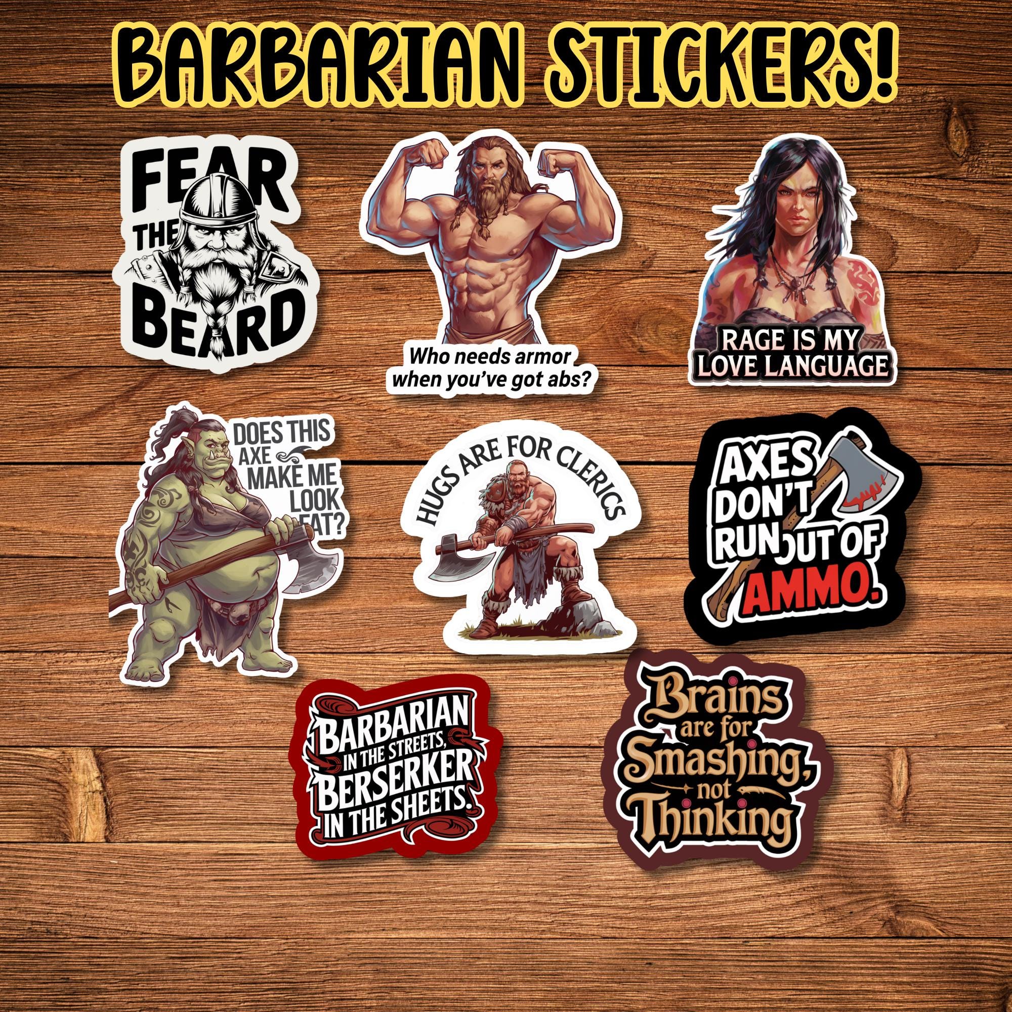 DnD Barbarian Stickers Set β Rage-Fueled Barbarian Humor Vinyl Stickers