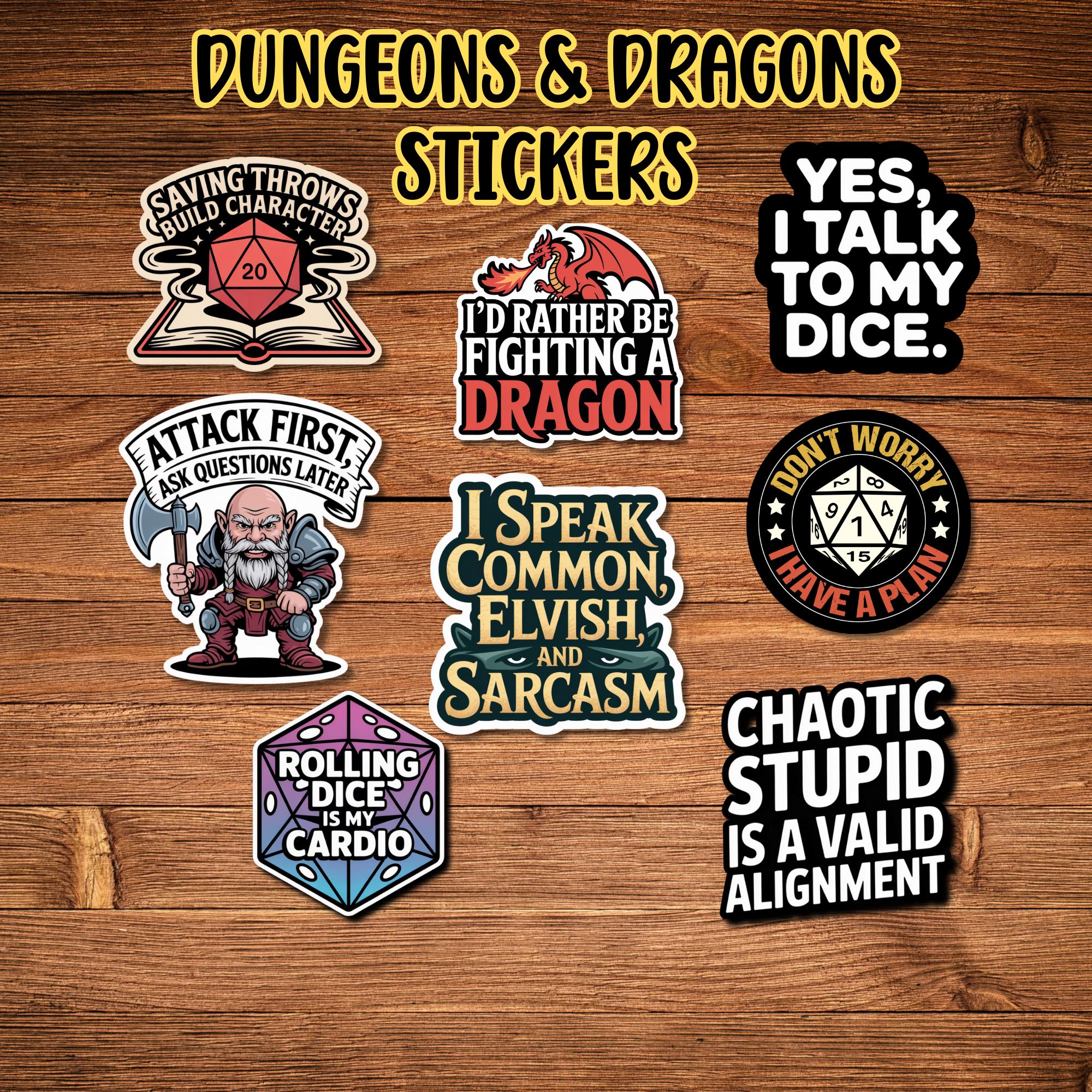 Unleash your inner adventurer with our unique DnD sticker set, the perfect gift for gamers and a must-have for every Dungeon Master or player. These high-quality Dungeons and Dragons decals are designed to personalize your gear and bring fantasy decor to your everyday life.