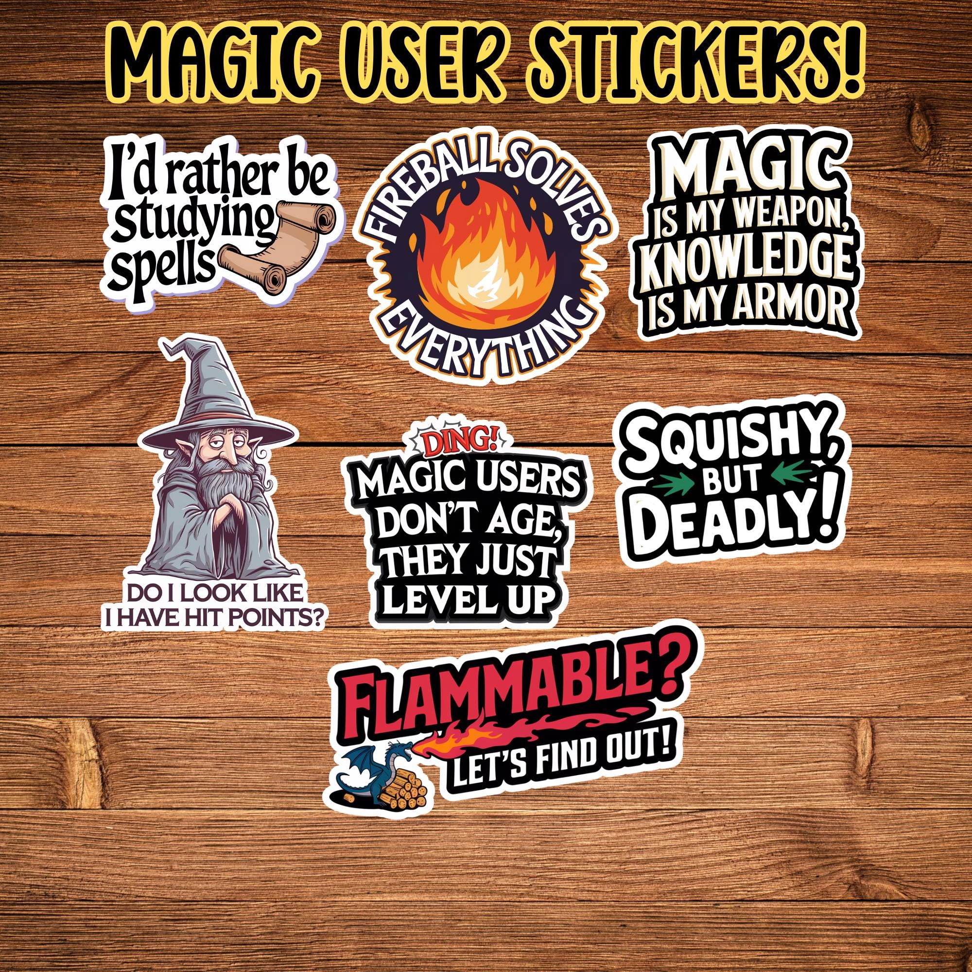 Printed on premium vinyl, these wizard stickers are designed to survive marathon sessions, spilled drinks, late-night spell prep, and the emotional damage of losing concentration. Apply to clean, dry surfaces for best results, and remove easily when your wizard multiclasses—or finally learns Mage Armor is not optional.