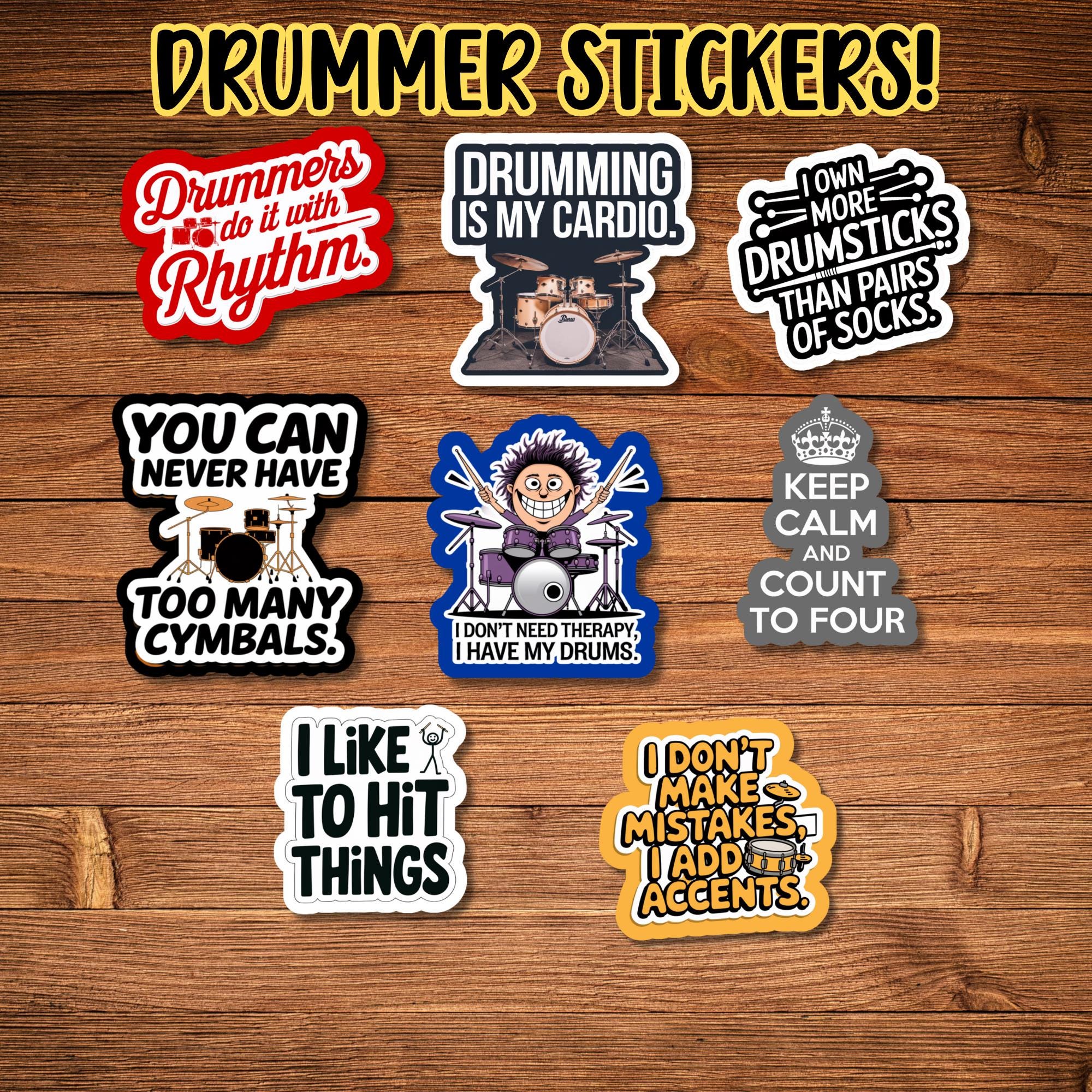 Funny Drummer Stickers โ Drummer Humor Vinyl Stickers for Music Lovers