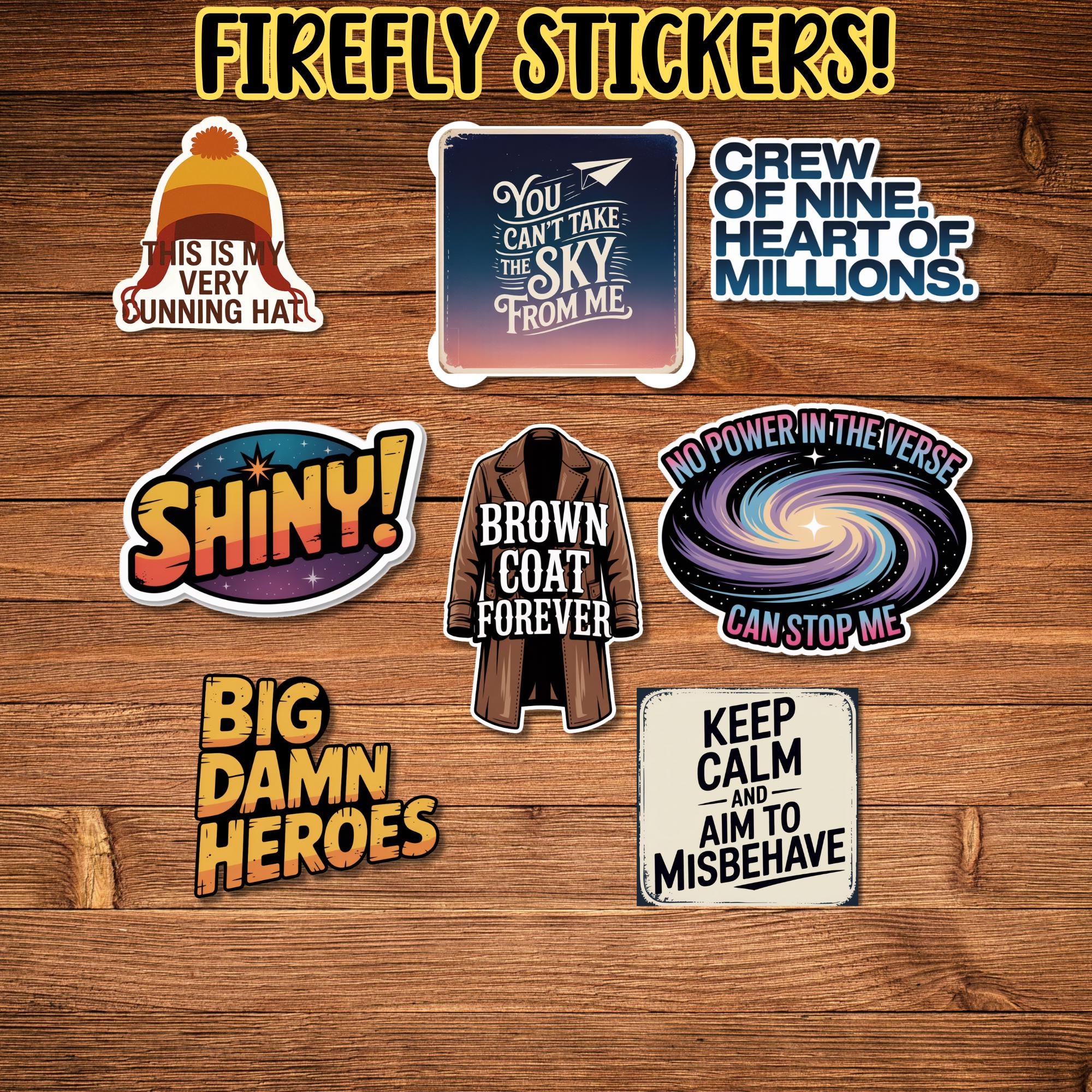These high-quality sci-fi vinyl stickers are perfect for laptops, water bottles, notebooks, planners, phone cases, e-readers, travel mugs, and everyday gear. Whether youโve watched it once or still mourn its cancellation, this set lets your fandom fly proud without being loud.