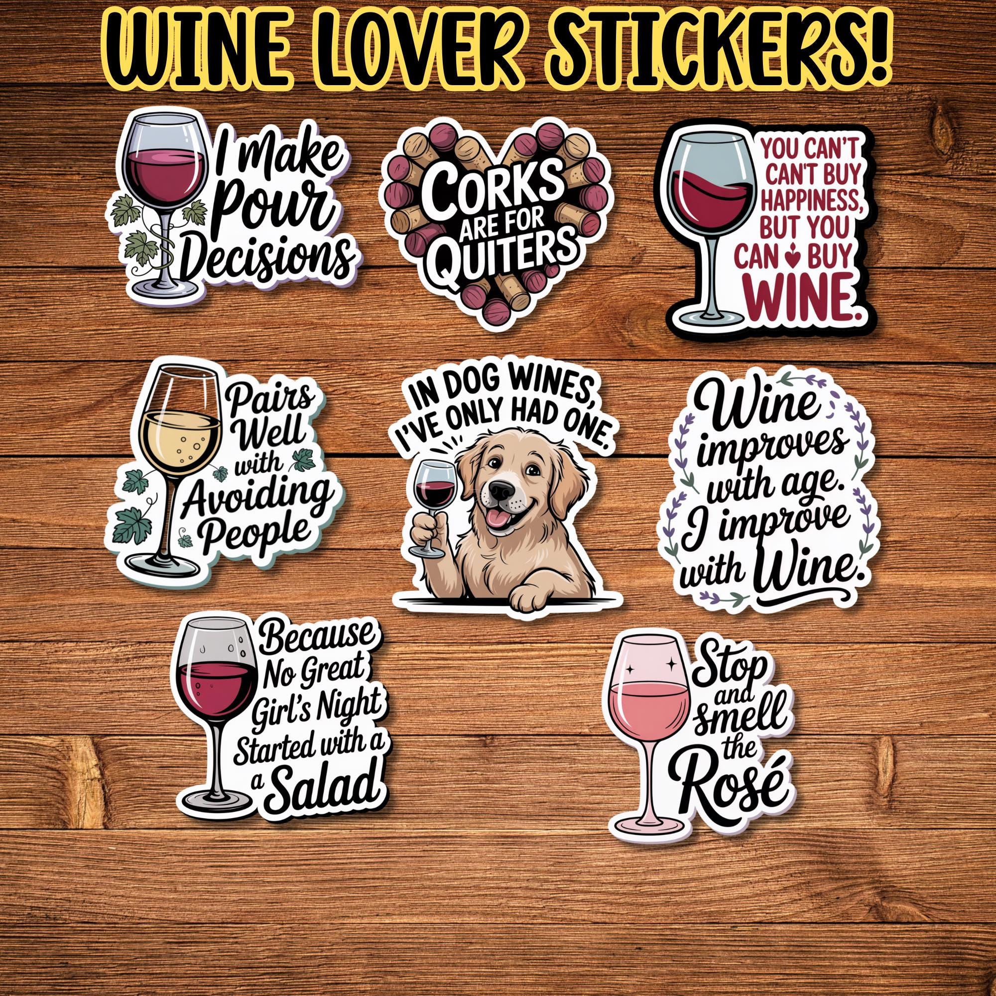 Wine Stickers Set β Funny Wine Humor Vinyl Stickers for Wine Lovers
