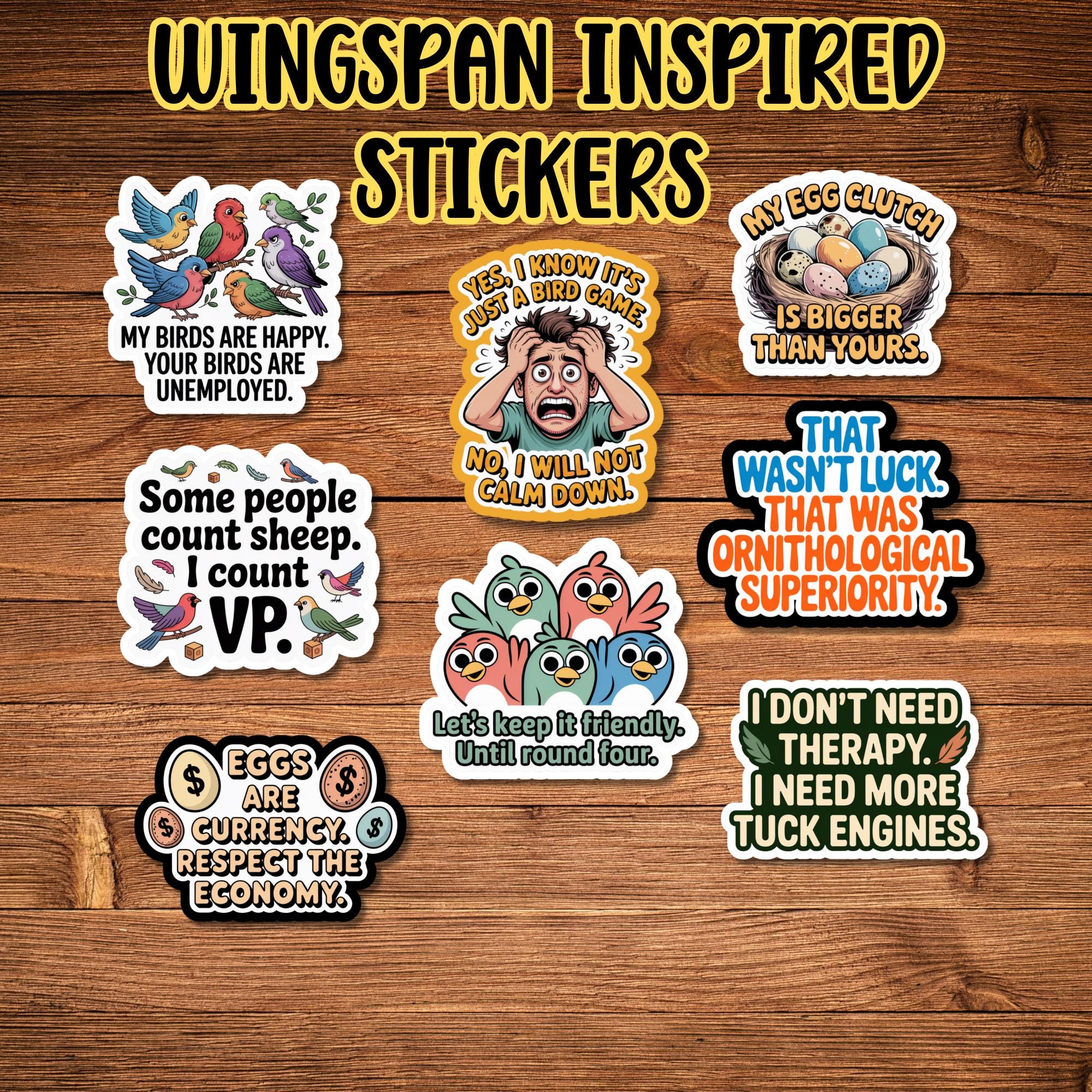 WingspanโInspired Sticker Set โ Cozy Board Game & Bird Lover Vinyl Stickers